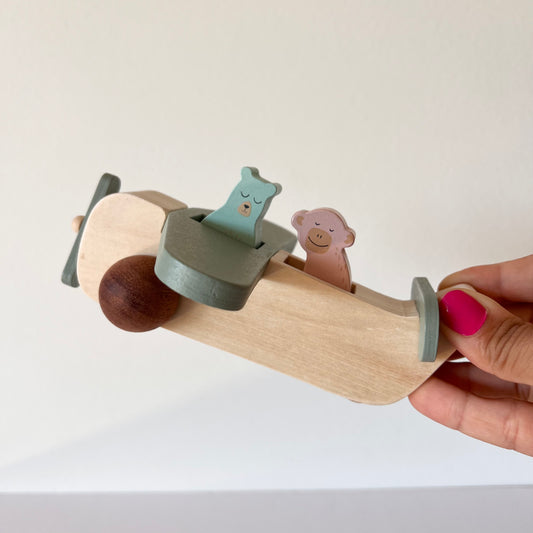 Avión de madera con pasajeros