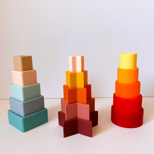 Set de Torres Apilables de Silicona - Juguete Sensorial para Bebés y Niños
