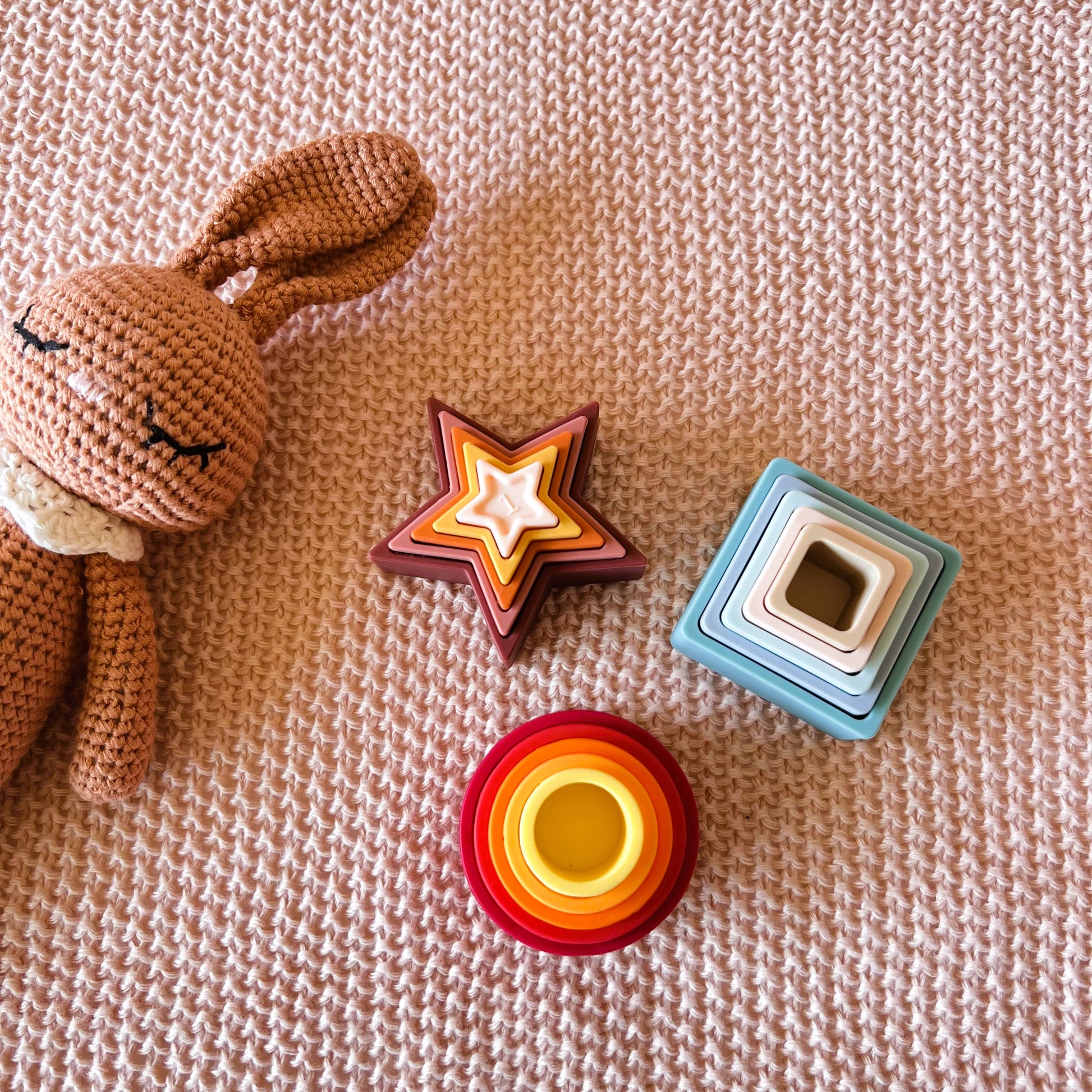 Este encantador set de torres apilables de silicona es ideal para estimular el desarrollo sensorial, cognitivo y motor de los más pequeños. Incluye tres torres de diferentes formas (cuadrada, estrella y redonda) y en una paleta de colores cálidos y suaves que atraerán su atención y fomentarán el juego libre.