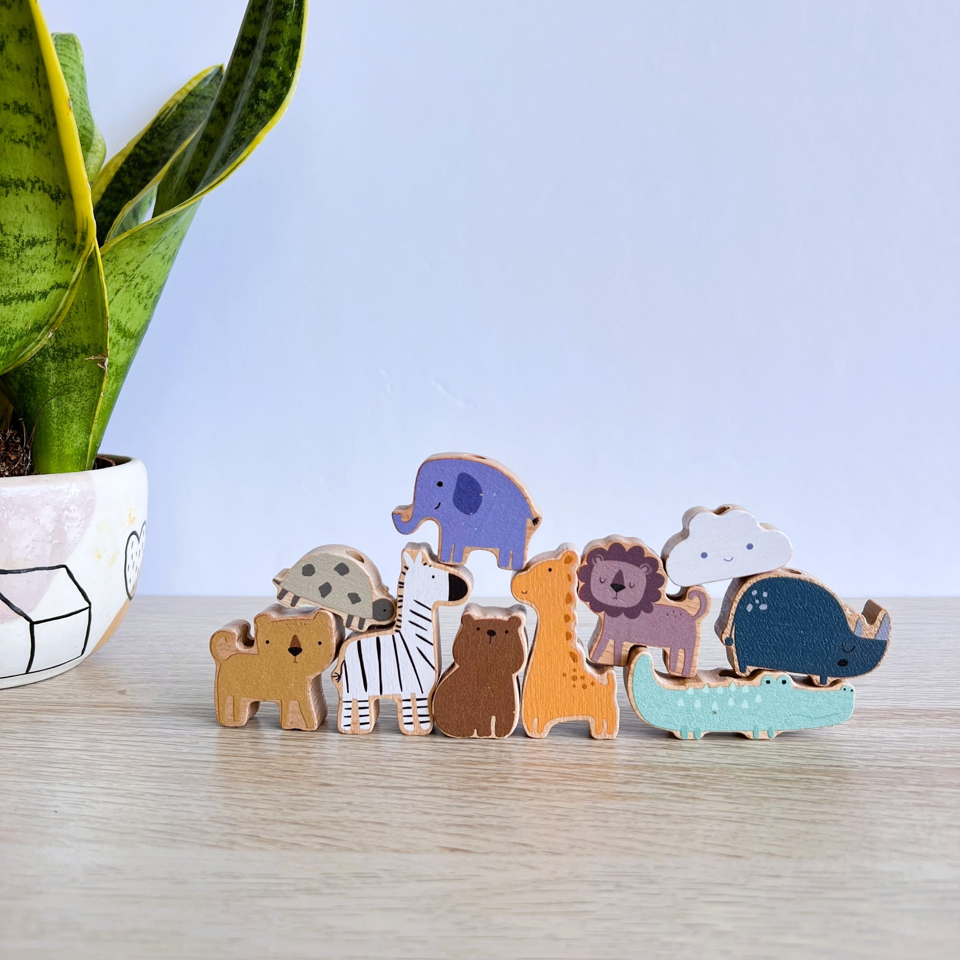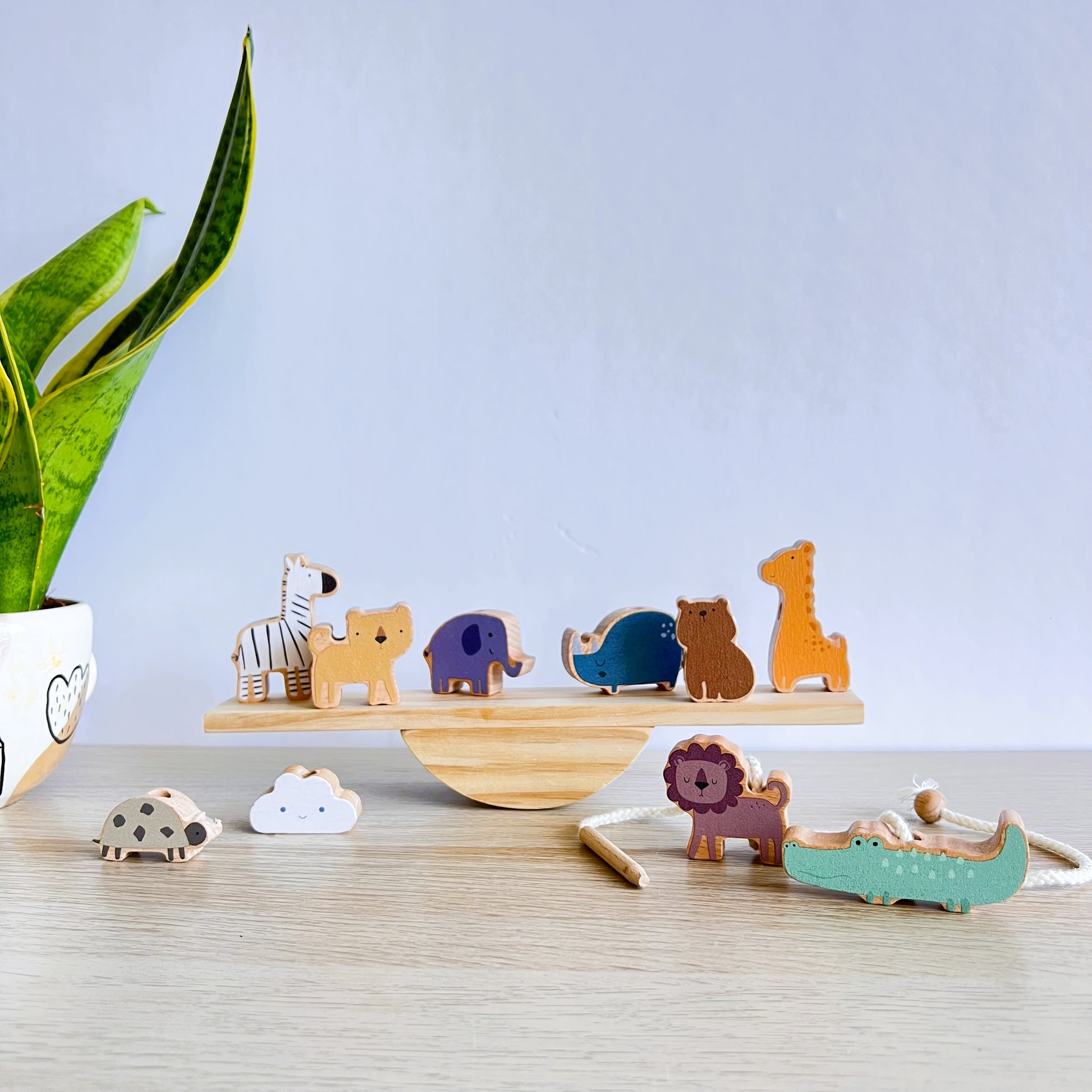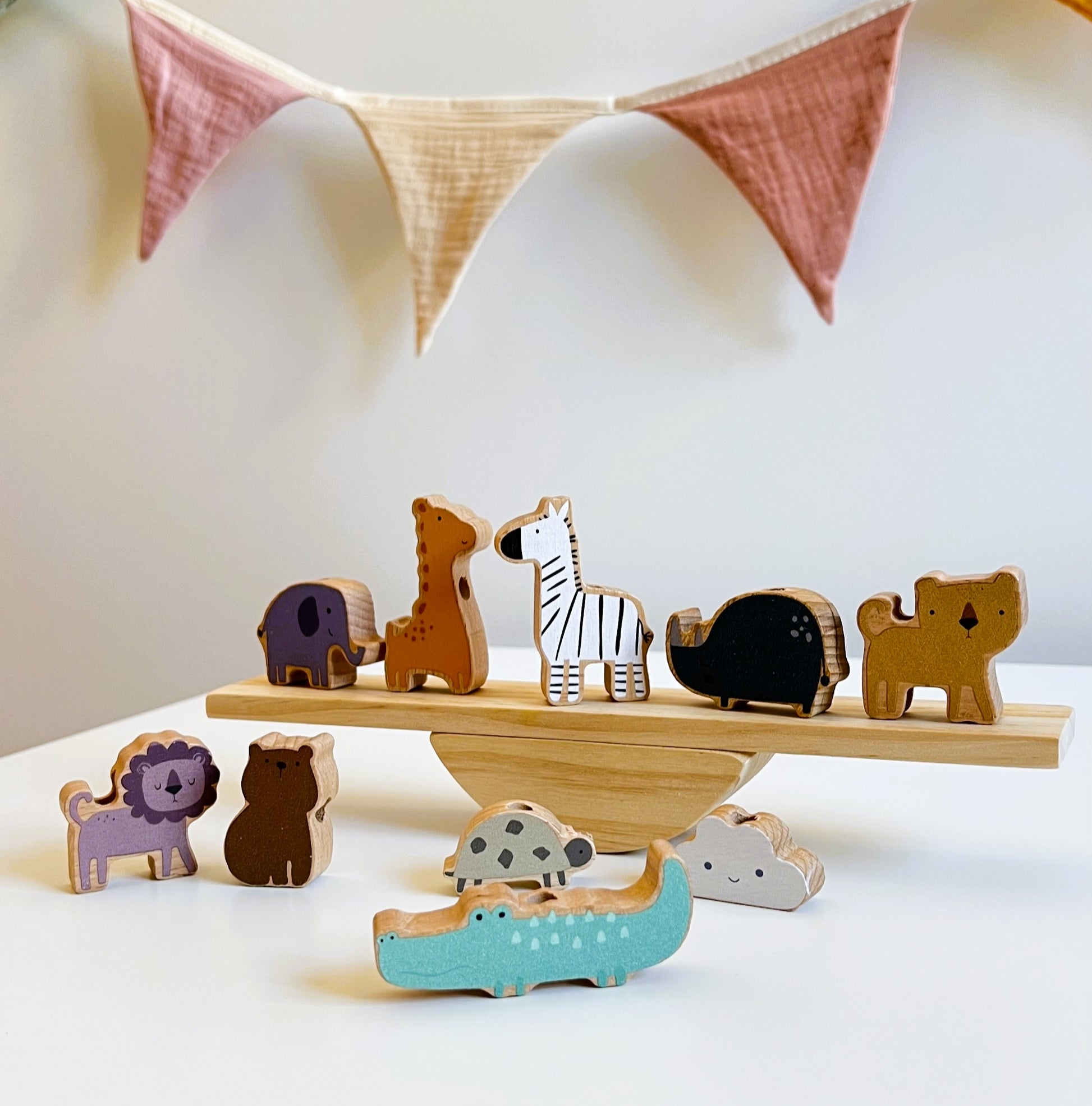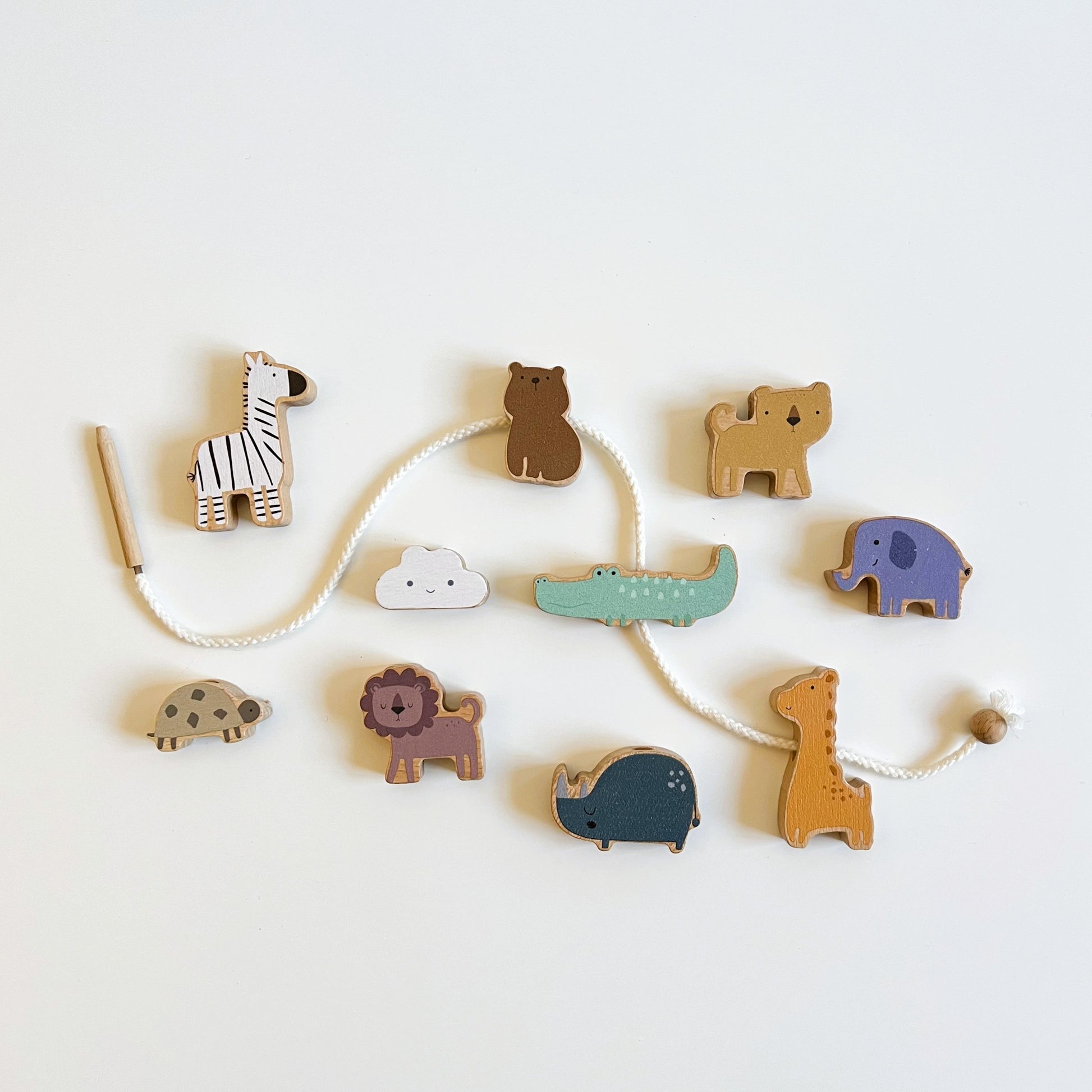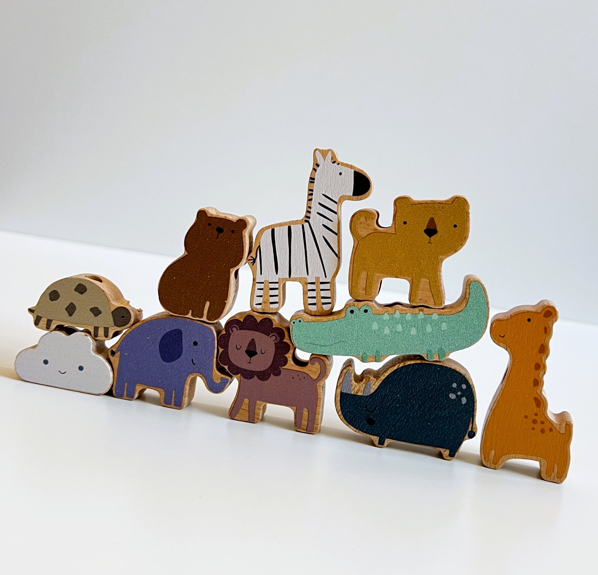 • 10 figuras adorables: león y leona, jirafa, elefante, cebra, cocodrilo, oso, rinoceronte, erizo y nube.
