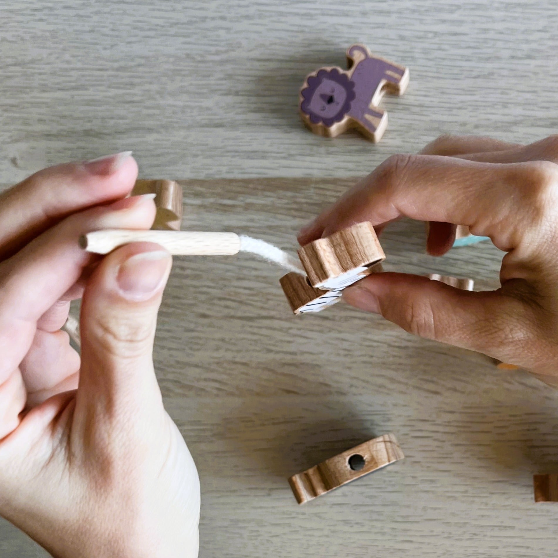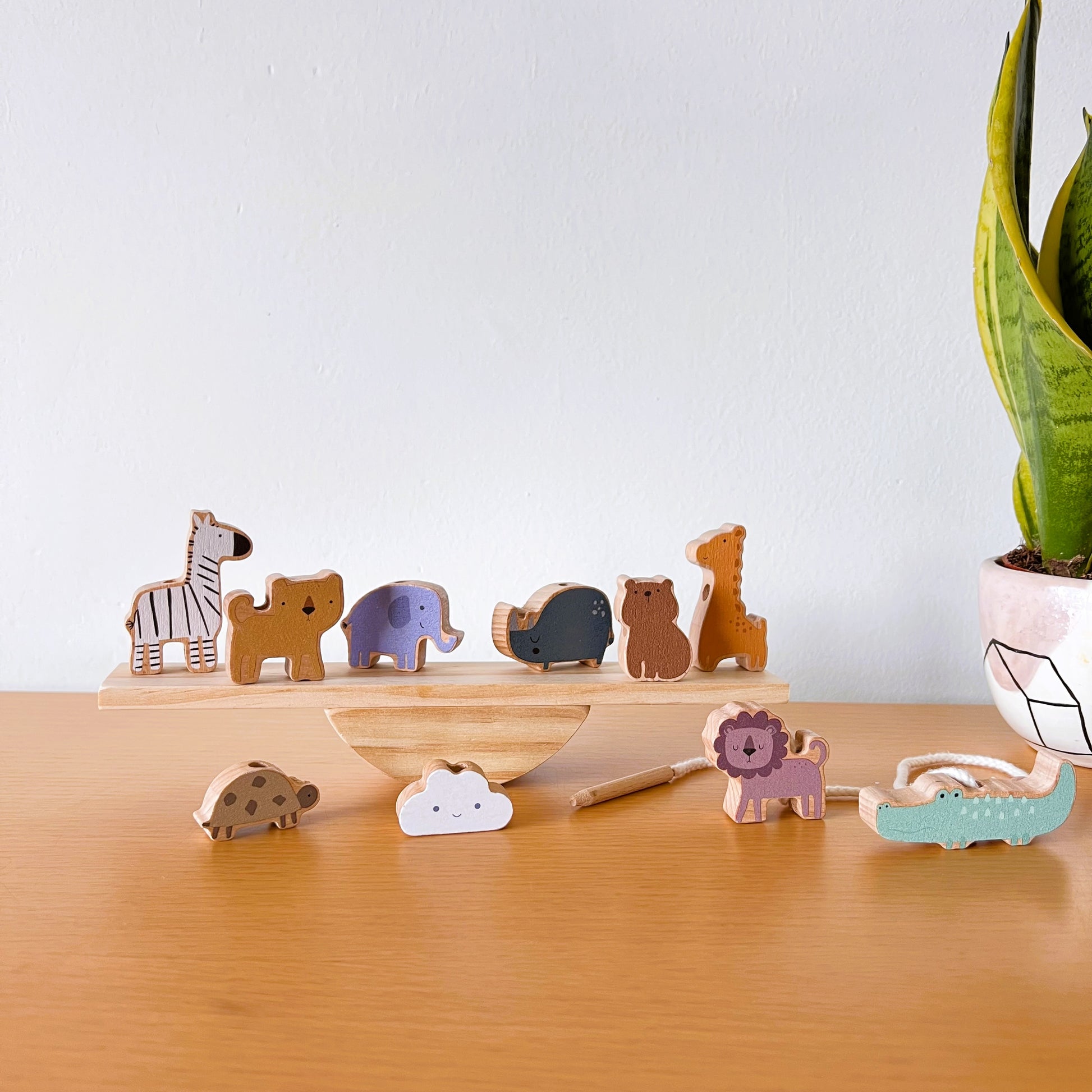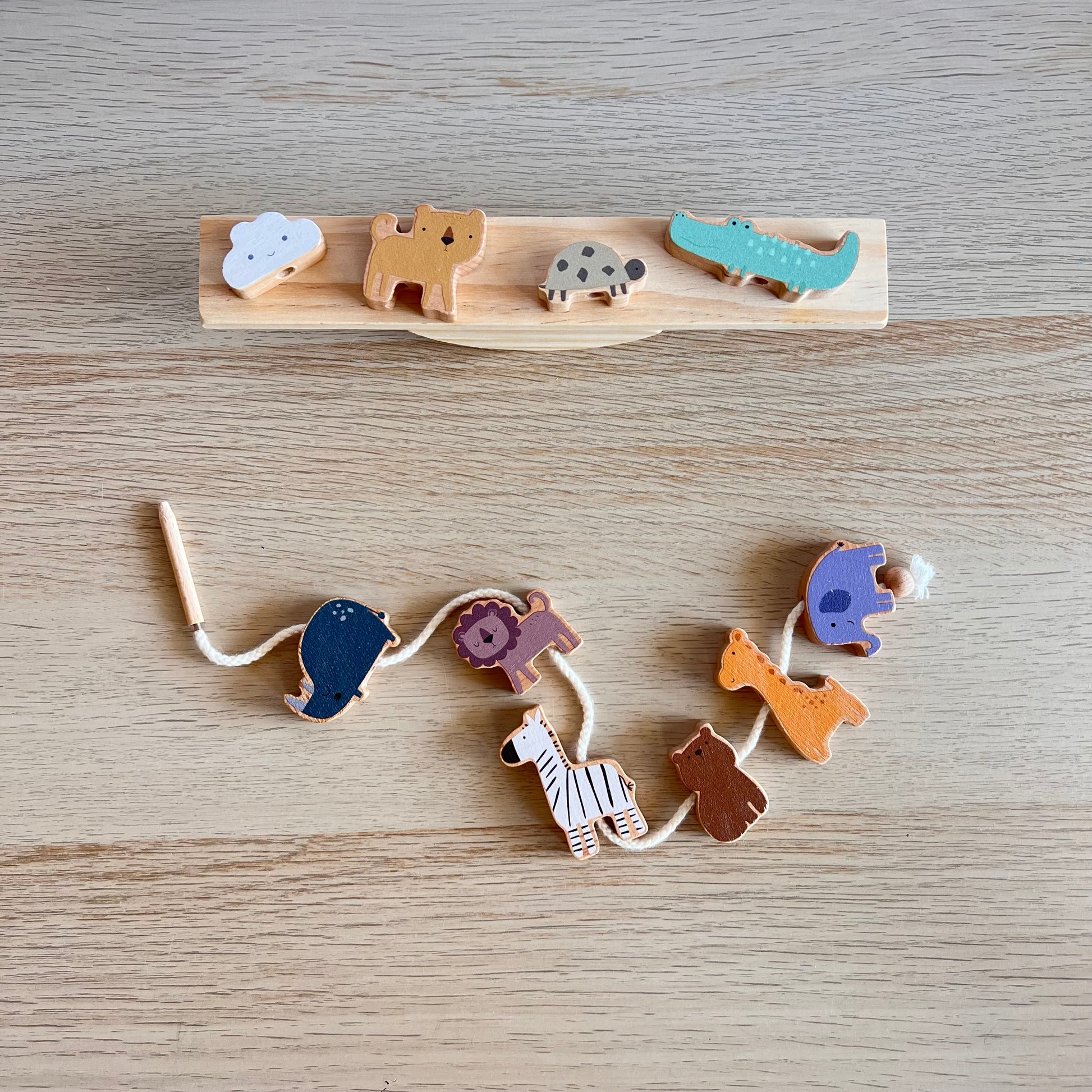 Juego 2 en 1 de Animales de Madera – Equilibrio y Ensarte Montessori