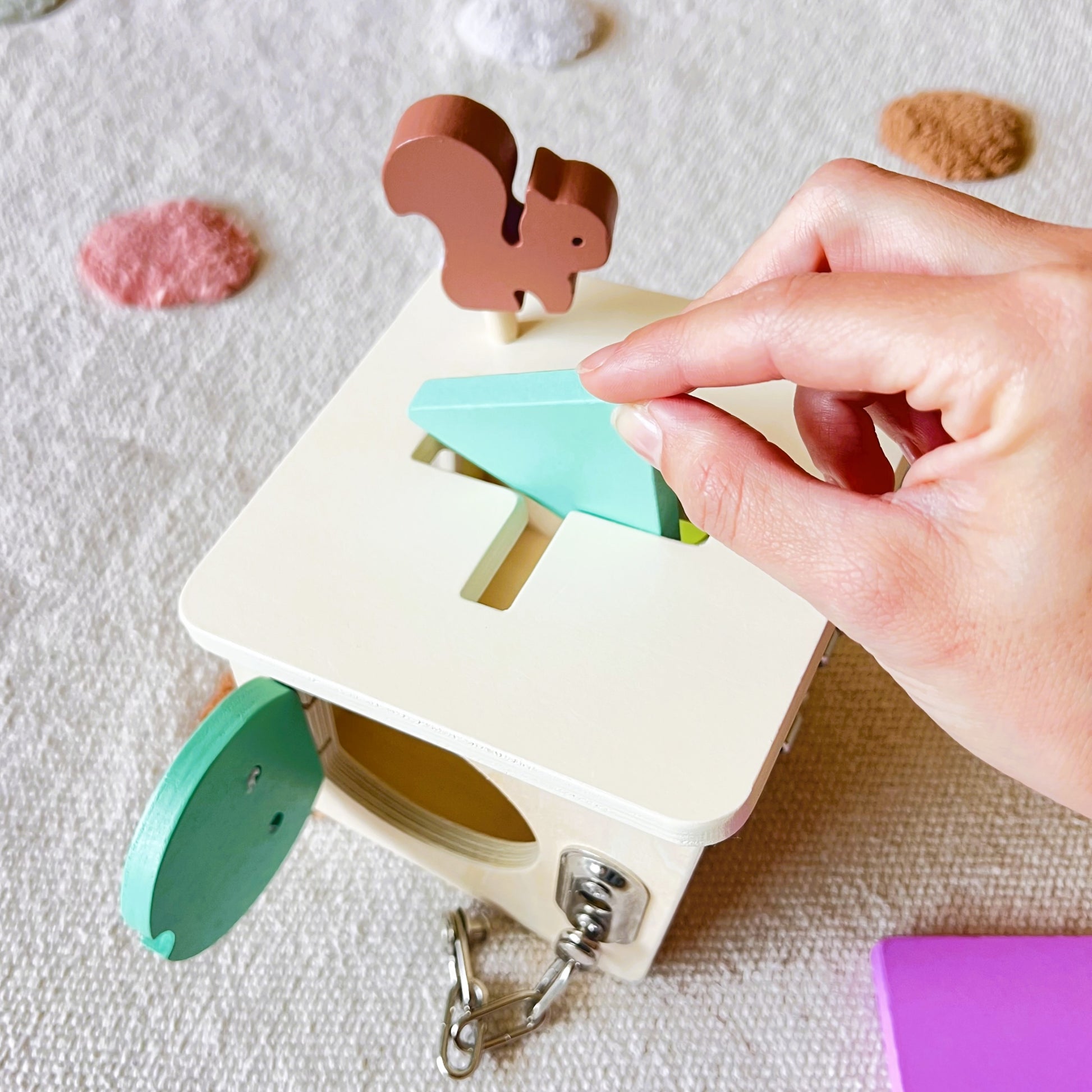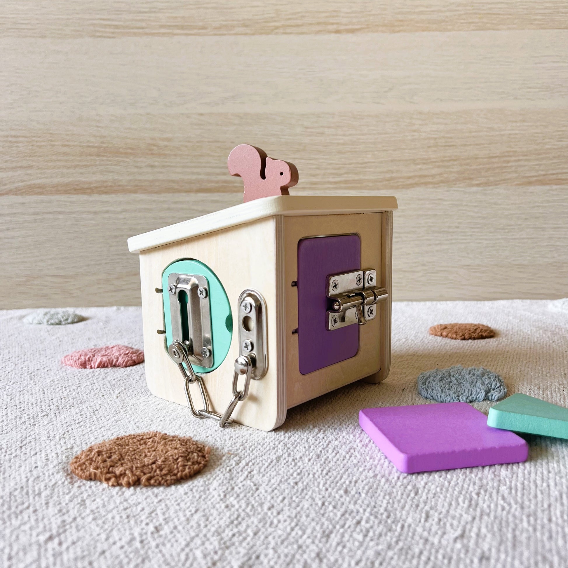 Caja de permanencia Montessori - Formas, cerraduras y ventanas