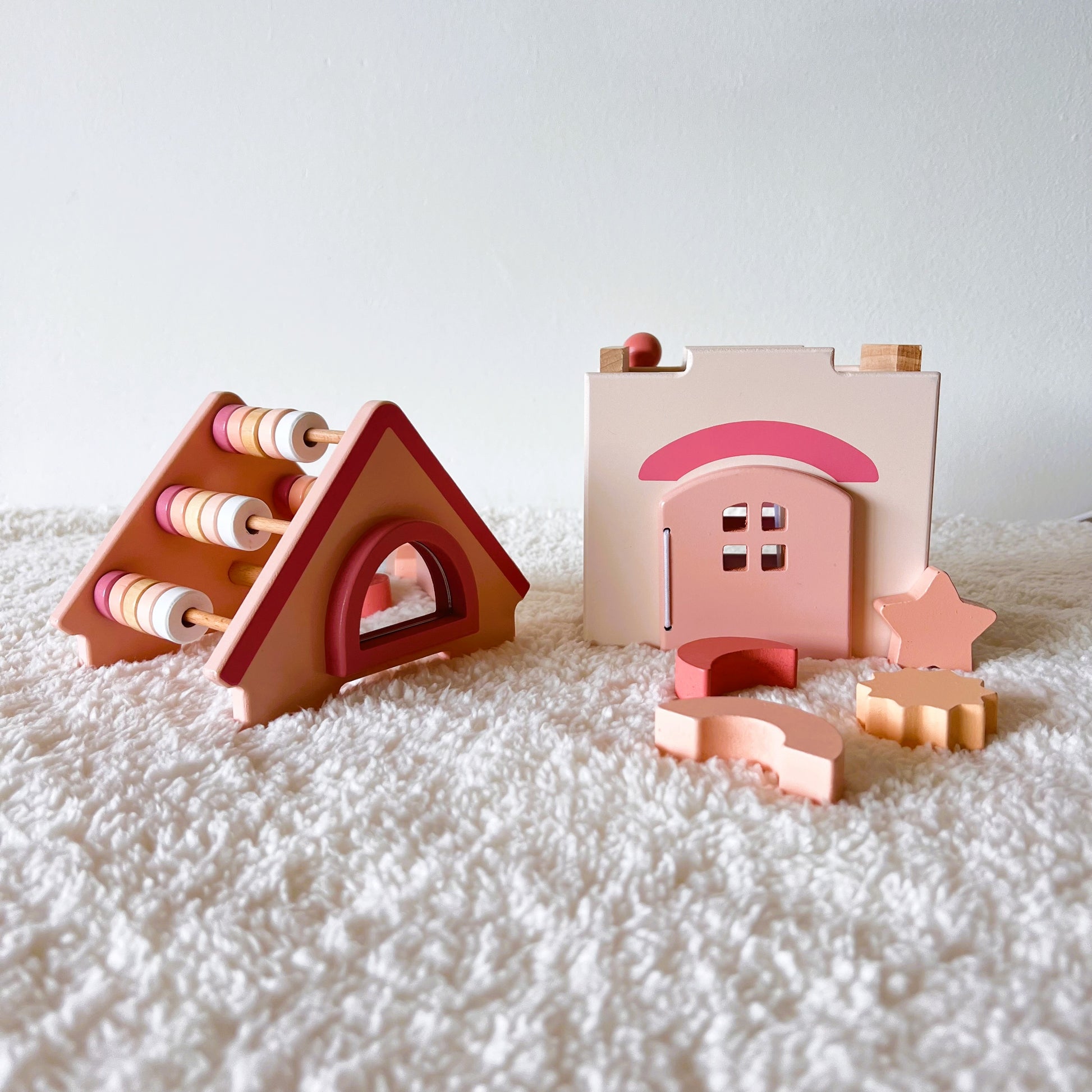 Casa de actividades de madera - Juego de encajables sensorial