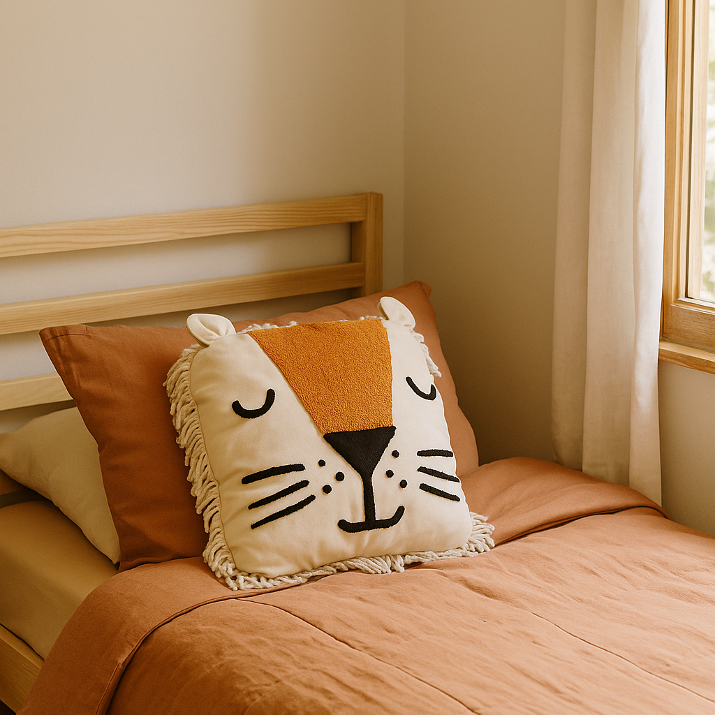 La Funda de Cojín LEON es un detalle encantador para llenar de calidez y estilo la habitación de los peques.