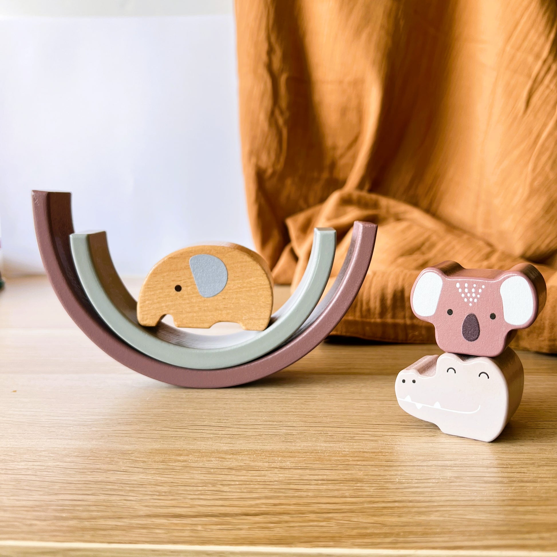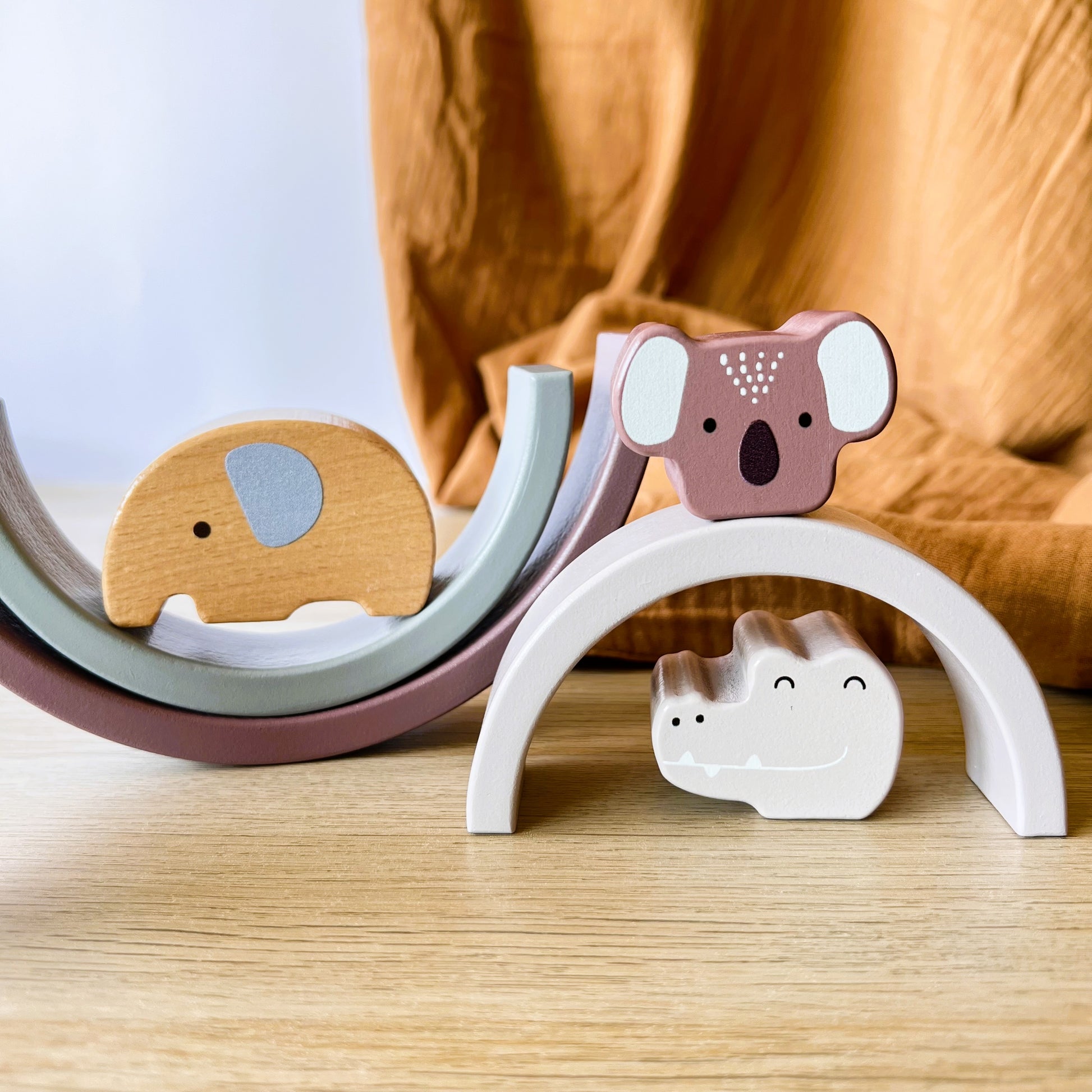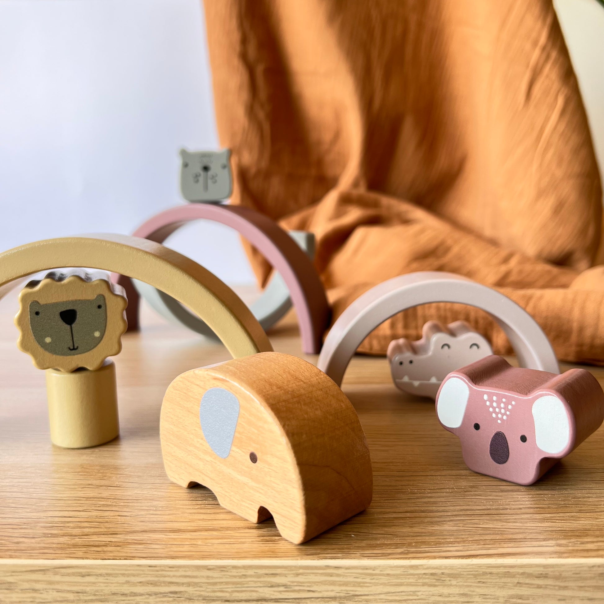 Este encantador set de bloques en tonos pastel combina piezas de apilado, figuras de animales y un arcoíris desmontable para fomentar la creatividad, la lógica y la motricidad. Los niños podrán construir torres, formar animales sobre cilindros y crear estructuras únicas mientras exploran colores, formas y equilibrio.