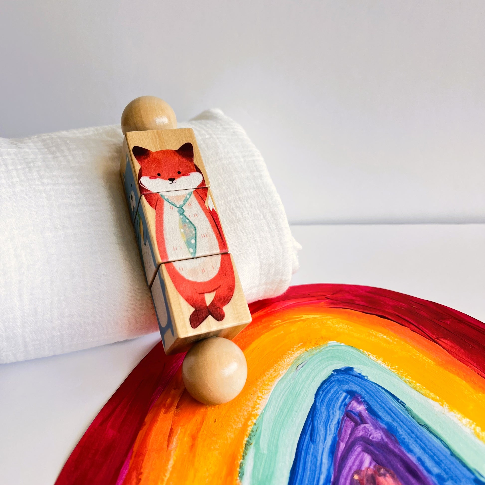 - 4 puzzles giratorios: oso, conejo, zorro y león.